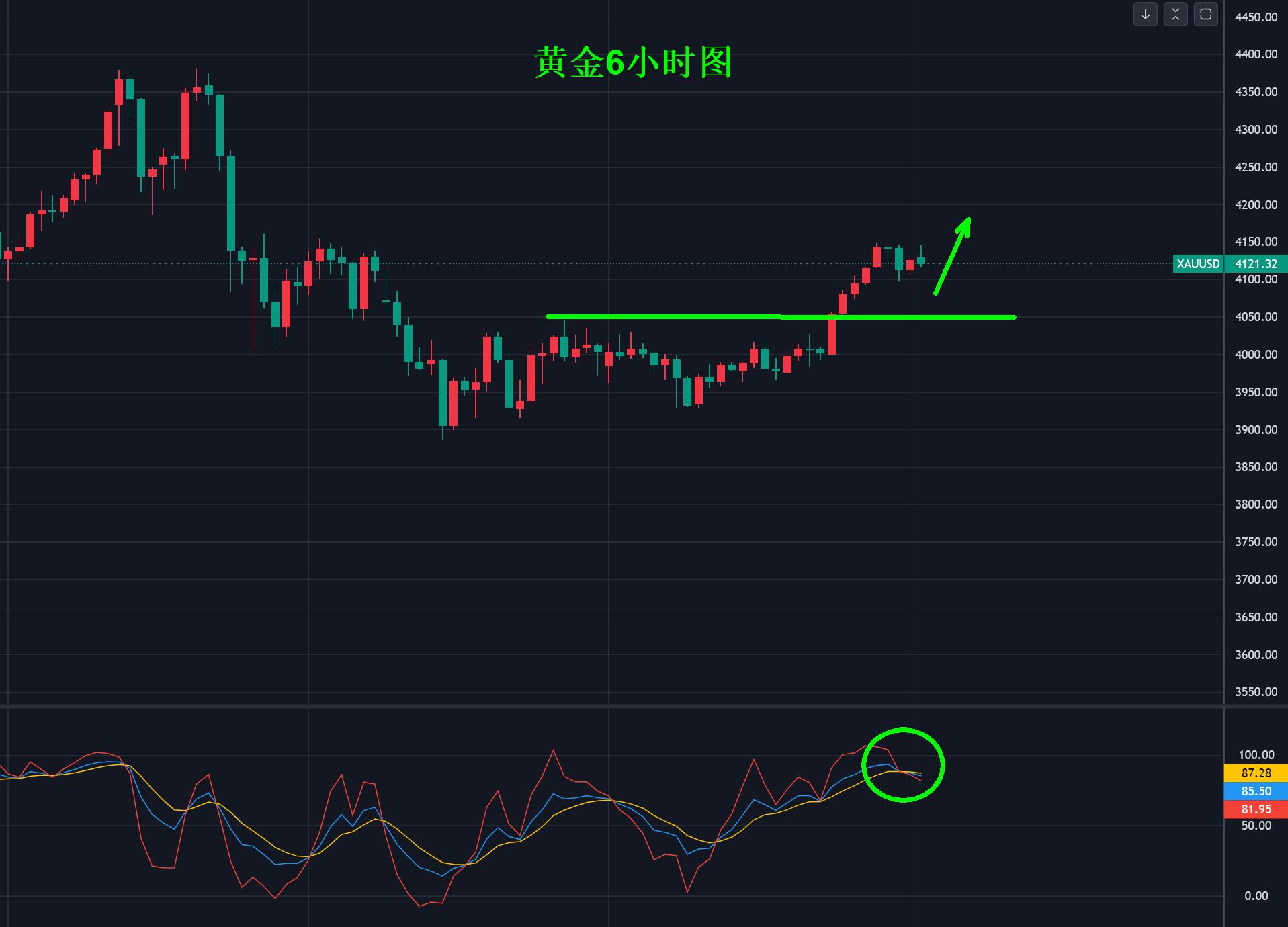 Derzeit liegt der Goldpreis bei 4.120 $. Nach zwei Rebounds gelang es ihm nicht, diese Position zu durchbrechen. Die starke Unterstützung nach dem Rückruf liegt beim Übergang von oben nach unten zwischen 4.060 und 50 US-Dollar. Hier wurde der Aufschwung des Bullenmarktes in der Anfangsphase mehrfach unterdrückt, und nach dem Durchbruch bildete sich ein Übergang von oben nach unten. Das heißt, es gibt mehr als zwei Positionen. Zum einen liegt der Goldpreis erneut bei 4.120 US-Dollar, um den Widerstand zu bestätigen, und zum anderen befindet er sich an der Übergangsposition von oben nach unten bei 4.060 bis 50 US-Dollar.