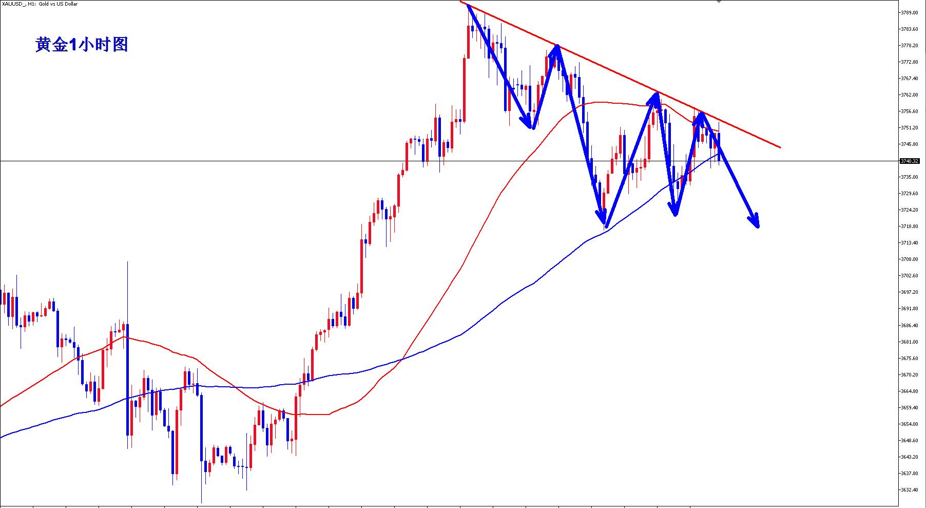 The gold has been fluctuating in the past two days, going back and forth, up and down, but it is still weak during the fluctuation, and gold still continues to be short in the early rebound of the market.