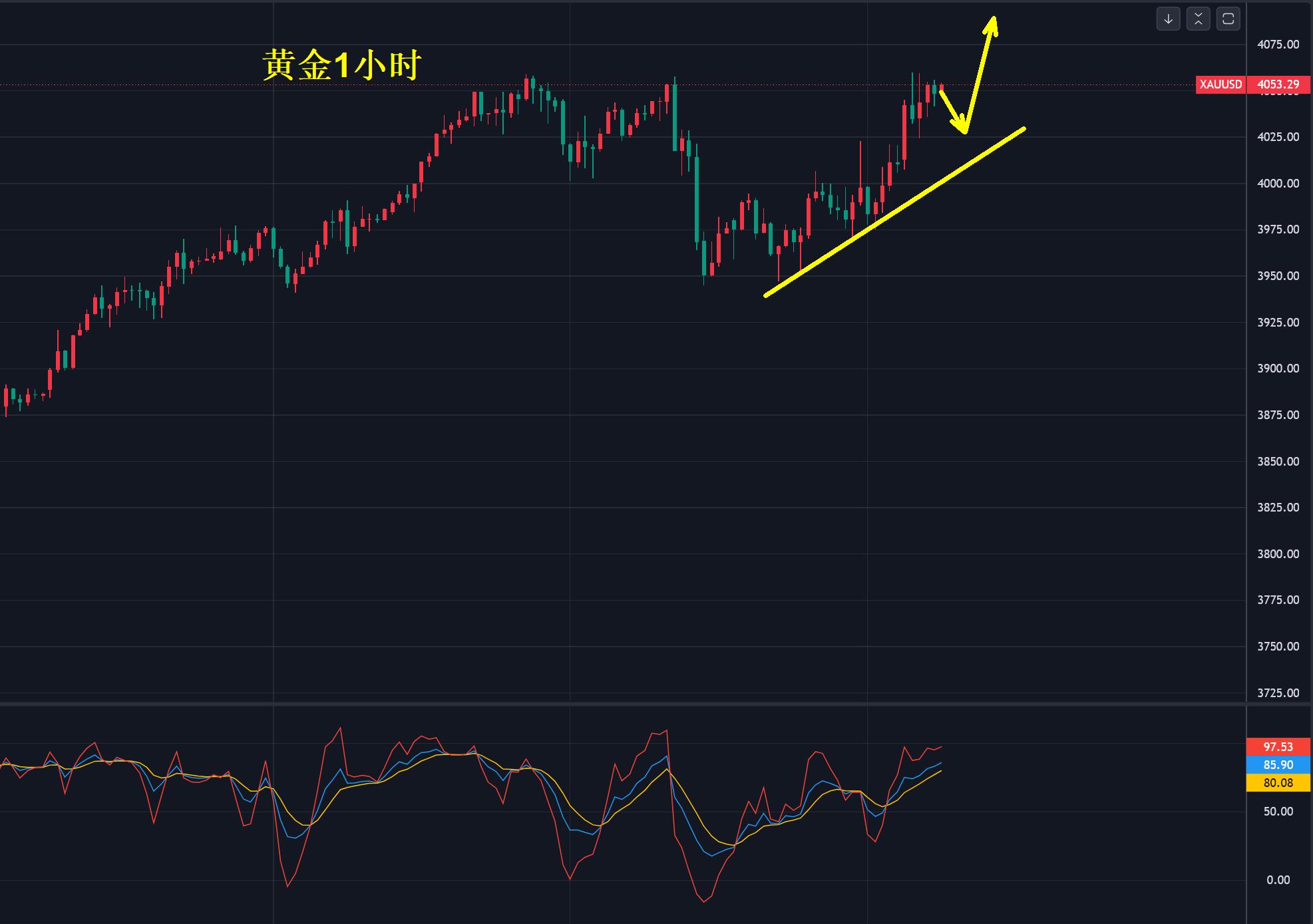 In the morning, gold prices continued to rise after opening. Last Friday's internal live broadcast emphasized the support of 3960-65. If it breaks through $4,000, bulls will continue to rise. It is currently close to the previous high of $4,060. Once it breaks through, it will continue to rise. The callback will focus on the morning rising positions of $4,025 and $4,010.