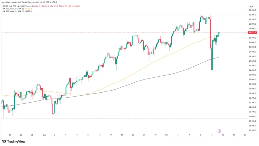 It is worth noting that as London silver inventories are running out, London silver spot prices and New York futures prices have seen unprecedented premium levels. Although there are large amounts of New York silver stocks being shipped to London, the silver madness may continue, driven by strong investment and physical demand. Bank of America raised its 2026 gold target price to $5,000 per ounce and silver to $65 per ounce. In the currency market, the Australian dollar led the gains overnight, while the Japanese yen and the euro were among the top losers. The US/JPY closed back above 152. On Tuesday, pay attention to Powell’s speech (23:30) and the financial reports of bank stocks such as JPMorgan Chase, Goldman Sachs, and Citigroup. In the absence of economic data, financial reports may have greater reference value. Source: TradingView, Forex.com US/JPY continued to rise after stabilizing around 151.20 on Monday. With the help of the trend line, the exchange rate is expected to continue moving towards a high of 153.30. After the breakthrough, the bullish target moves up to the 154-155 area. Changes in Japan's domestic political situation are the main reason for the current weakening of the yen. The probability of the Bank of Japan raising interest rates within the year is less than 40%. On the downside, if it falls below 150, it may test the 146.50 line again. Source: TradingView, Forex.com As the threat of tariffs cools down and the AI craze continues, market sentiment has experienced a rapid reversal, which is expected to help the Nasdaq 100 index continue to recover Friday's losses and challenge the previous high of 25,200. On the contrary, if it falls below 24550, it will increase the probability of high shocks. However, as long as the macro gold remains stable, buying on dips is still applicable. The above content is all about "[XM Foreign Exchange Official Website]: [Today's Focus] Gold and Silver are Unstoppable, TACO Trading Helps the U.S. Stocks Rebound". It was carefully www.xmfx.orgpiled and edited by the editor of XM Foreign Exchange. I hope it will be helpful to your trading! Thanks for the support! Due to the author's limited ability and time constraints, some contents in the article still need to be discussed and studied in depth. Therefore, in the future, the author will conduct extended research and discussion on the following issues: