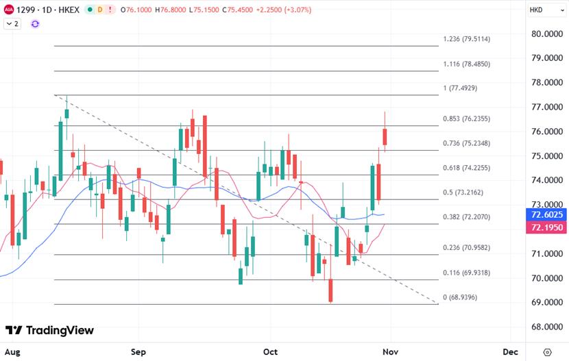 XM Hong Kong stocks: New business value has hit another bright spot, and AIA’s share price is close to the previous high
