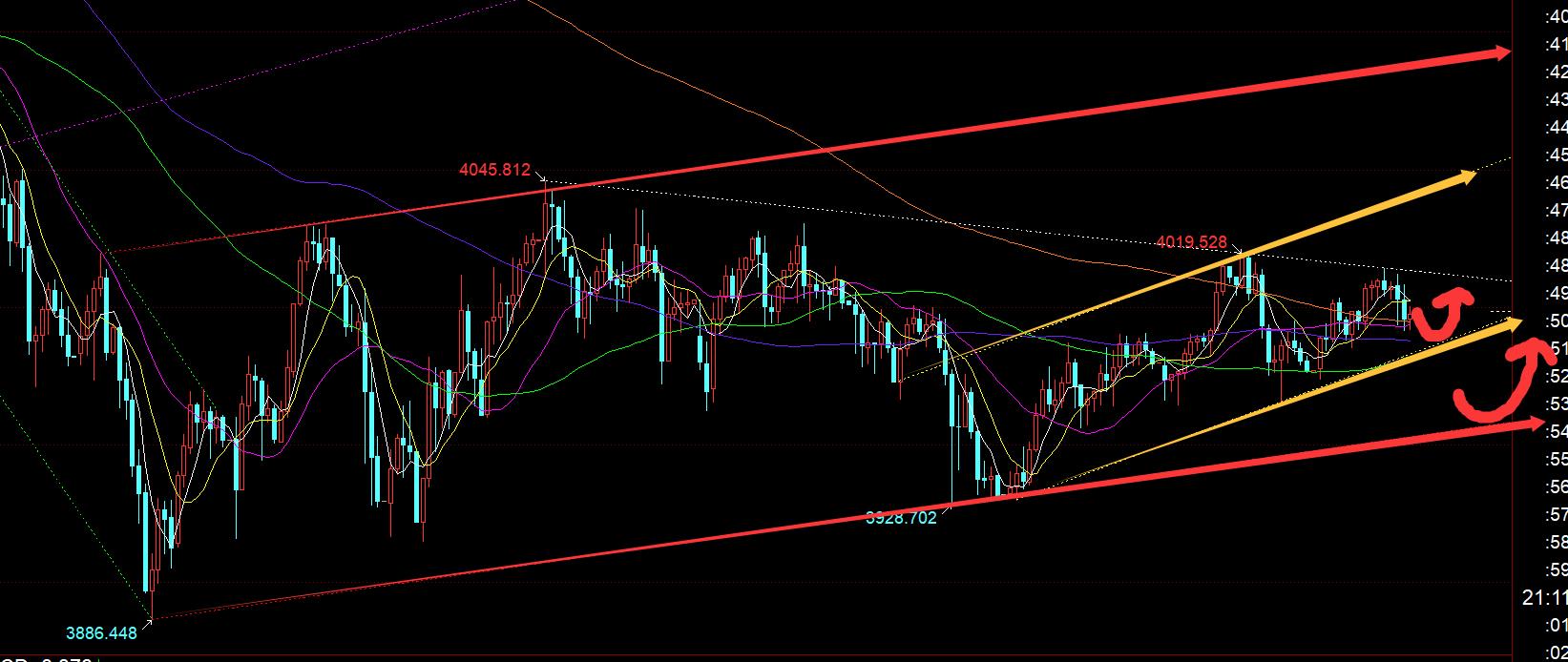 Second, the golden hourly level: in the morning, it relied on 3975 to directly pull up. It was at yesterday's 50-divided support and was also the main bullish level prompted overnight; when Dayang K appeared, it stepped back to the 382-divided position 3985 to continue to prompt a bullish rebound, and finally reached the target level above 4000. ; After Dayang broke through the middle rail in the afternoon, it repeatedly pierced the middle rail, so I did not consider entering the market because the stability was not strong at that time; although the European market rebounded upward to 4014, the intensity was not great. At this time, it shot higher and fell back to the middle rail line; for tonight, since the non-agricultural data will not be released, the fluctuations tonight may not be large. You have to pay attention to the opening of the US stock market at 22:30. It is still affected by it in the past two days; the current support is 3990, which is the 618 division that suppresses the intraday gains, followed by the lower track of the yellow channel 3983-84 line in the picture. If you hold these two points, you can still maintain the upward shock. The resistance is 4012-14, and a breakthrough is required. It can test the gain and loss of yesterday's high point; if the strong impact is possible, there is a small probability to test the upper track of the yellow channel 4040-42. If it can go, this can pave the way for the second high point next week; in addition, if the support of the lower track of the yellow channel cannot be held, it will weaken or test the lower track of the red channel 3955;