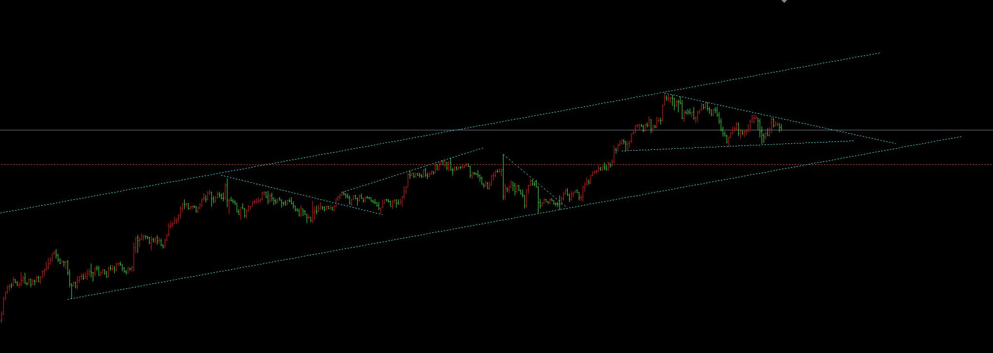 9.26 El triángulo dorado fluctúa de amplio alcance hacia arriba y hacia abajo, esperando la posición de ruptura durante el día