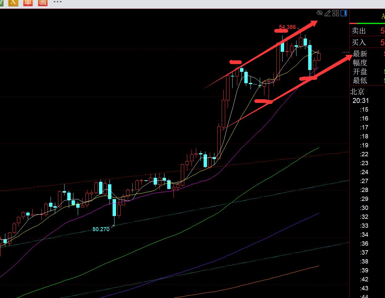 Plata: a nivel diario, la plata ha mostrado una gran tendencia en V y está a punto de probar el máximo histórico anterior de 54,45; En la imagen de arriba, preste atención al fuerte movimiento alcista en el canal amarillo esta noche, y el soporte del carril inferior 53,4 tiene una señal estabilizadora. , también es la vía intermedia de la línea horaria. Entonces esta noche, si retrocedes hasta 53,5-53,6, podrás seguir siendo alcista. Si rompe 53,4, deberá elegir la oportunidad de ajustar su posición. Espere al próximo mínimo antes de estabilizar la tendencia alcista. El objetivo de resistencia es 54,45-54,6;