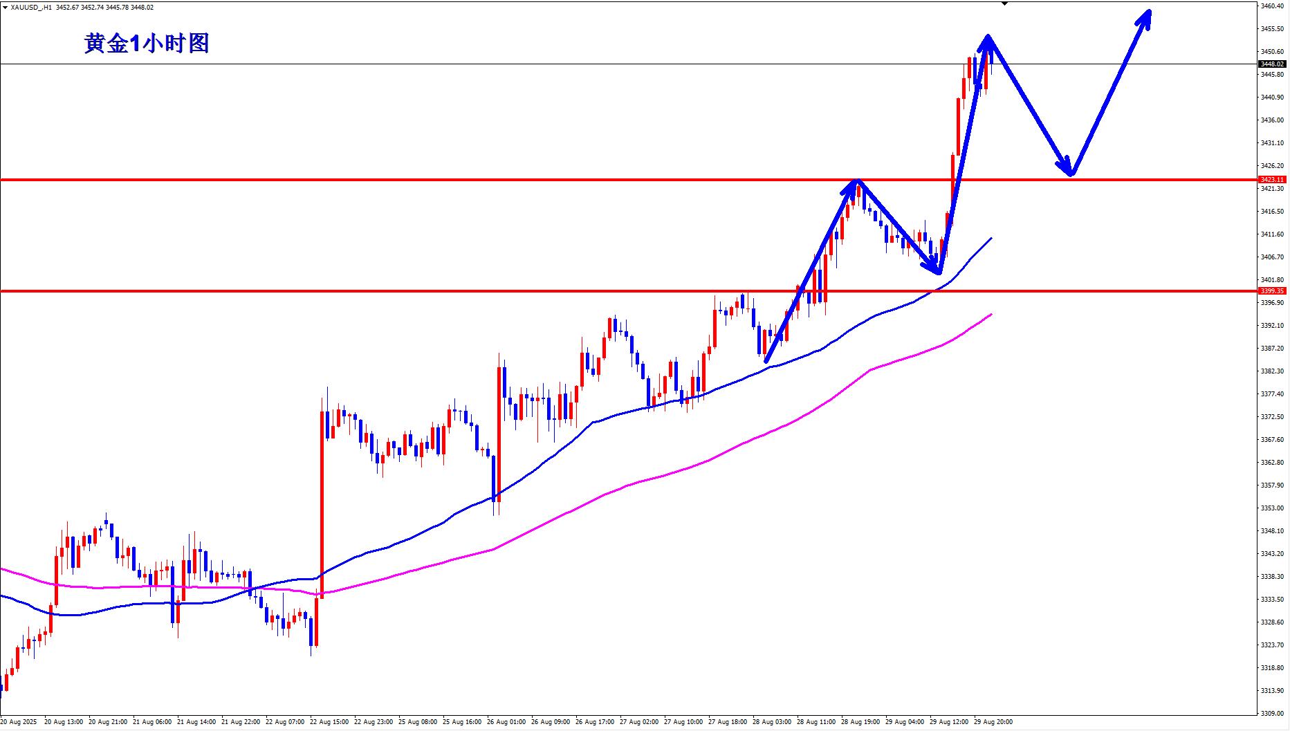 Il continuo medio in movimento di 1 ora da spostare. Il recente massimo di 3423 di Gold è stato convertito da pressione al supporto. L'oro continua a passare a lungo a un minimo di 3423 la prossima settimana. I tori d'oro sono ora inarrestabili e pieni di forza. Non esiste un grande negativo a breve termine, quindi può essere difficile per l'oro apportare importanti aggiustamenti, quindi è meglio salire con la tendenza.