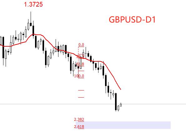 Da un punto di vista tecnico, GBPUSD è in una tendenza ribassista a medio termine e ci sono segni di declino accelerato da metà ottobre. La media mobile rossa MA10 nel grafico è una linea di resistenza più affidabile La tendenza continuerà. Secondo la previsione della linea di espansione della sezione aurea, il prossimo livello di supporto potrebbe apparire a 2,3. Intorno a 82~2,618 punti, corrispondenti a 1,2880~1,2932 punti.