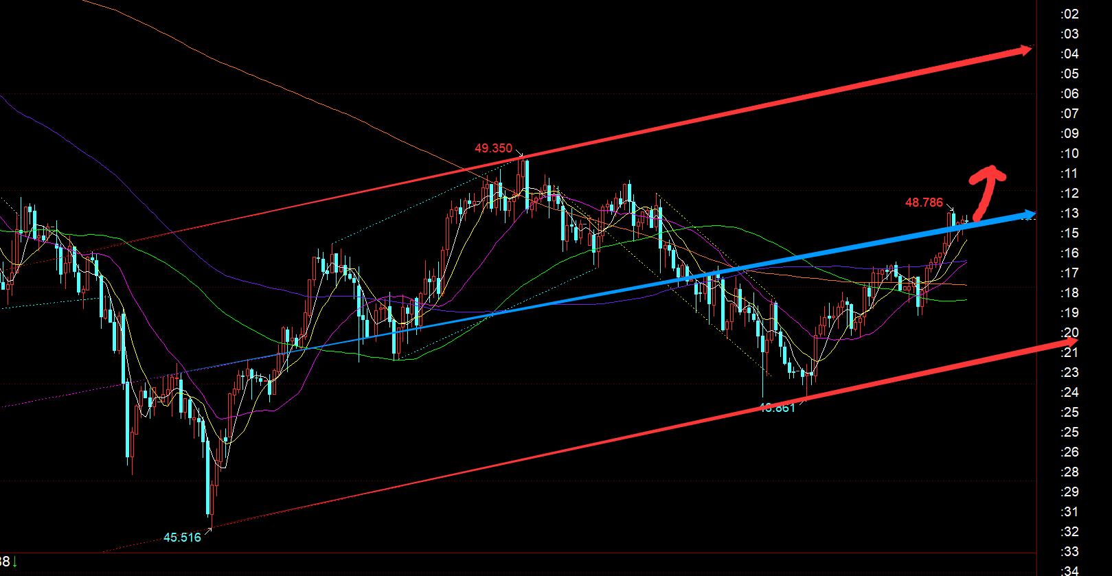 Argento: Anche la linea giornaliera ha sfondato il 10 oggi, e si prevede anche che esca dal debole intervallo di consolidamento nella parte inferiore, e salga per testare la linea mediana 49,4. Solo sfondandolo si può raggiungere un livello inferiore a 51 e oltre; nel breve termine, l’immagine sopra mostra che la tendenza generale è coerente con l’oro, che si muove in un ampio intervallo all’interno del canale rosso, e la linea blu è la tendenza che è stata supportata unilateralmente all’inizio di settembre. Anche la linea potenziale attualmente si è rotta verso l'alto. Poiché è considerata una piccola tendenza unilaterale al rialzo forte durante il giorno, non possiamo aspettare troppi test retrospettivi, altrimenti ricadrà facilmente nello shock; pertanto, è meglio non scendere al di sotto del punto minimo di 48,5 in cui il mercato europeo si è ritirato. Gli obiettivi di resistenza superiori dovrebbero prestare attenzione a 49 e 49,4. La chiave sta nel fatto se la pressione di 49,4 può essere superata in un colpo solo;