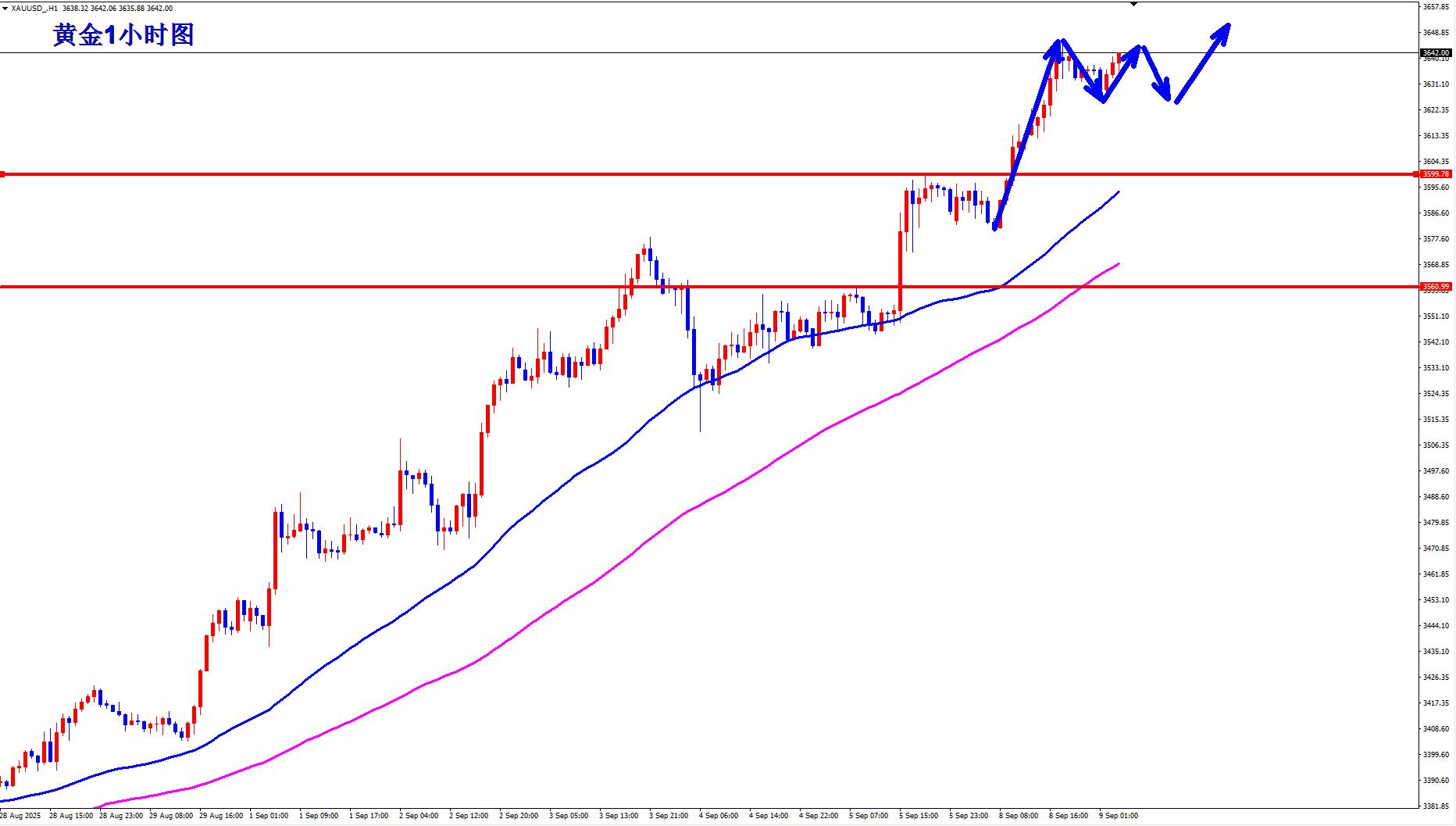 골드는 3620, 정지 손실은 3610, 대상은 3650-3660입니다.