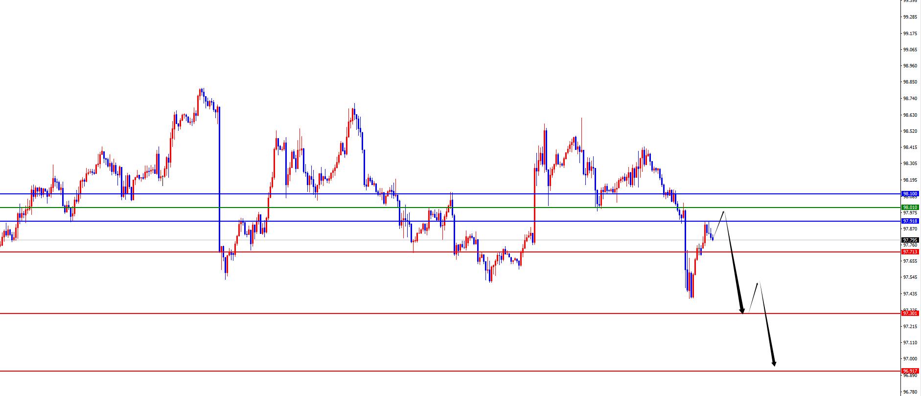 美指97.90-98区间空,防守5美金,目标97.30-96.90