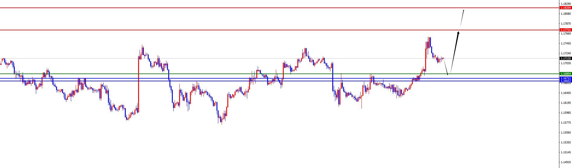 欧美1.1670-80区间多,防守40点,目标1.1770-1.1820