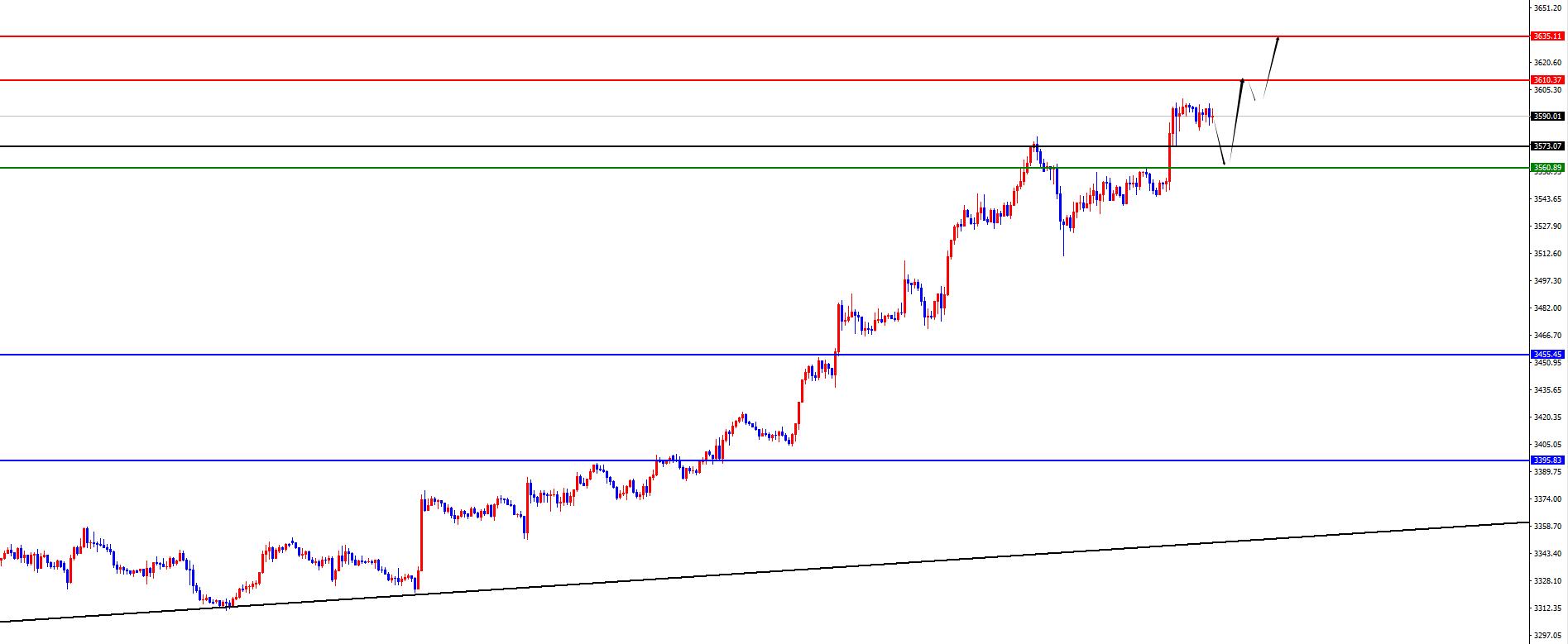 黄金3561-3562区间多,防守10美金,目标3590-3610-3635