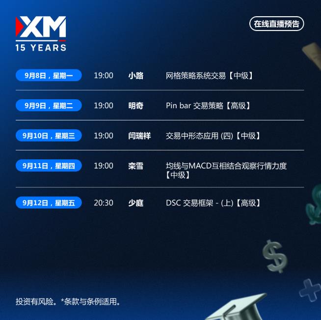 以上内容就是关于“【XM外汇】:中文在线直播讲座 本周预告”的全部内容,是由XM外汇小编认真整理编辑的,希望对你的交易有所帮助!感谢支持!