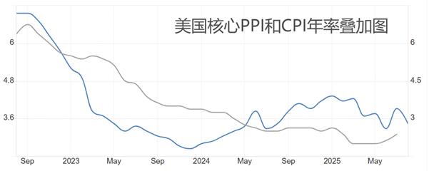 PPI是CPI的前瞻指标,PPI数据表现糟糕,今日20:30即将公布的CPI数据也难言乐观。上图为美国核心PPI年率和CPI年率的叠加图,可以看出,两者趋势性基本一致。但是,从个别月份看,PPI和CPI也存在相反方向的变动。比如今年4月份,核心PPI年率从3.8%降低至3.1%,但核心CPI年率保持2.8%不变。今日的数据有类似情况,美国8月未季调核心CPI年率,前值为3.1%,市场的预期值也是3.1%,似乎没有受到糟糕PPI数据的影响。