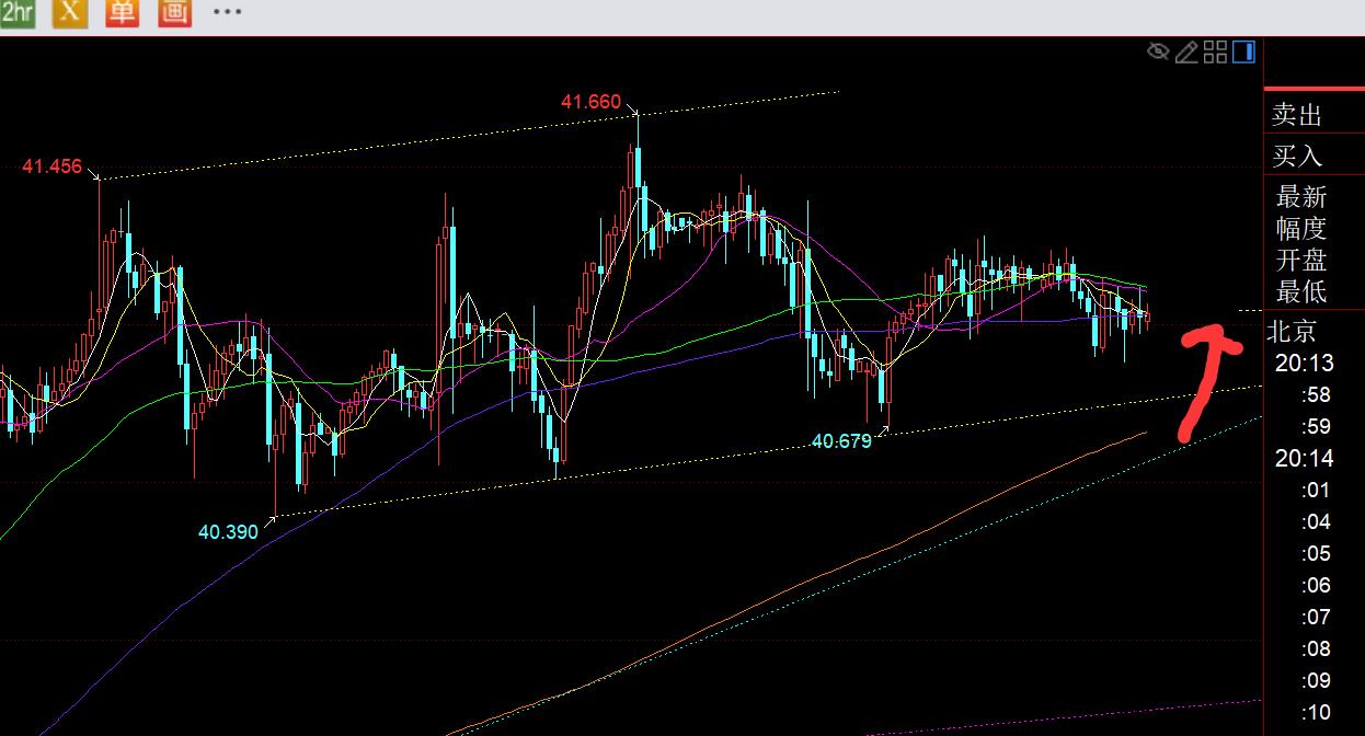 第二,白银方面:昨日40.6上看涨,也是略差一点,同样踏空一波拉升;