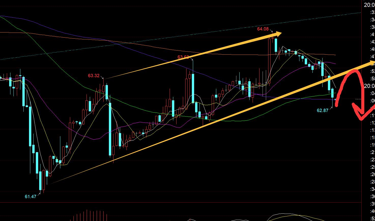 原油方面:昨日提及震荡反弹后,留意64一线承压下滑,目前来看是符合的;今日下破图中通道下轨,今晚反弹还是留意压制情况,63.5之下;