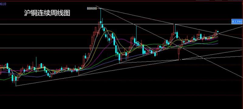 沪铜连续市场上周开盘在80378的位置后行情先回落,周线最低给到了79479的位置后79479的位置后行情强势拉升,周线最高触及到了81360的位置后行情整理,周线最终收线在了80810的位置后,周线以一根下影线长于上影线的纺锤形态收线而这样的形态收尾后,本周80350多止损80000,目标看81000和81350和81550.