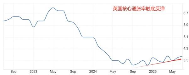 本周四19:00,英国央行将公布9月利率决议结果,主流预期认为其将维持4%的基准利率不变。英国央行的上一次利率决议在8月7日,当时宣布降息25基点。不过,降息的结果是在第二轮投票时达成的,并且投票结果的比例为5比4,局势非常惊险。英国央行官员中,反对降息支持暂停降息的人越来越多。主要原因是,英国的通胀率已经出现触底反弹迹象,如果一味的降息,向市场提供过剩的流动性,高通胀问题可能重新出现。数据来看,英国7月核心CPI年率为3.8%,高于前值3.7%,创出2024年5月以来最高点。英国央行认可的通胀标准在2~3%之间,当前的通胀水平严重超过目标,这是英国央行选择暂停降息的核心理由。