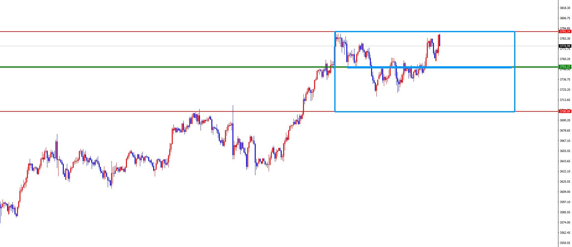 黄金关注3700-3791区间,价格在分水岭3750-3751区间之上先看多头