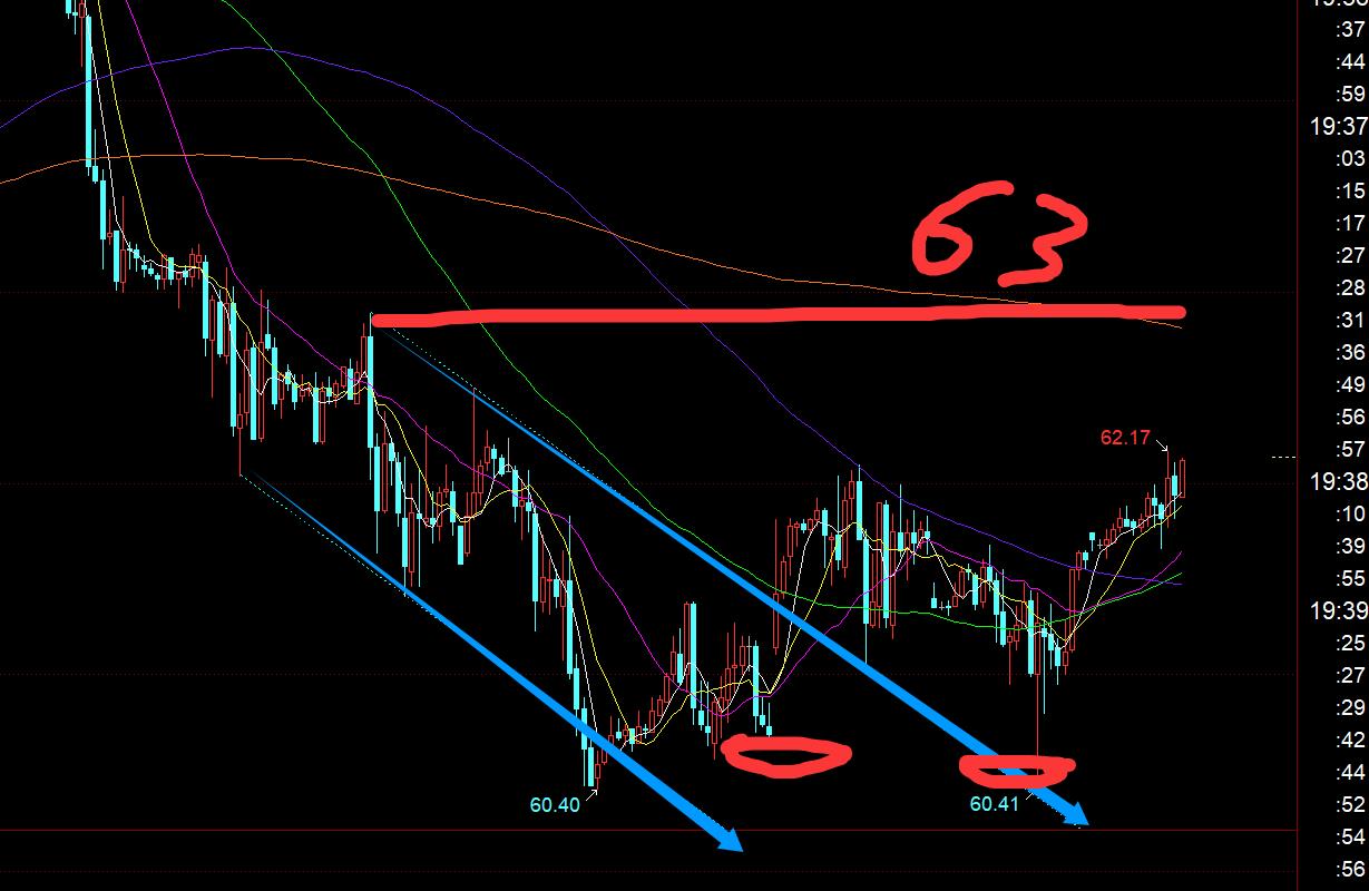 原油方面:昨日先下行回补了周一跳空的缺口,探底拉升收阳,今日延续反弹;上方关键阻力63附近,一旦突破站上它,则会展开一轮超跌反弹修正;