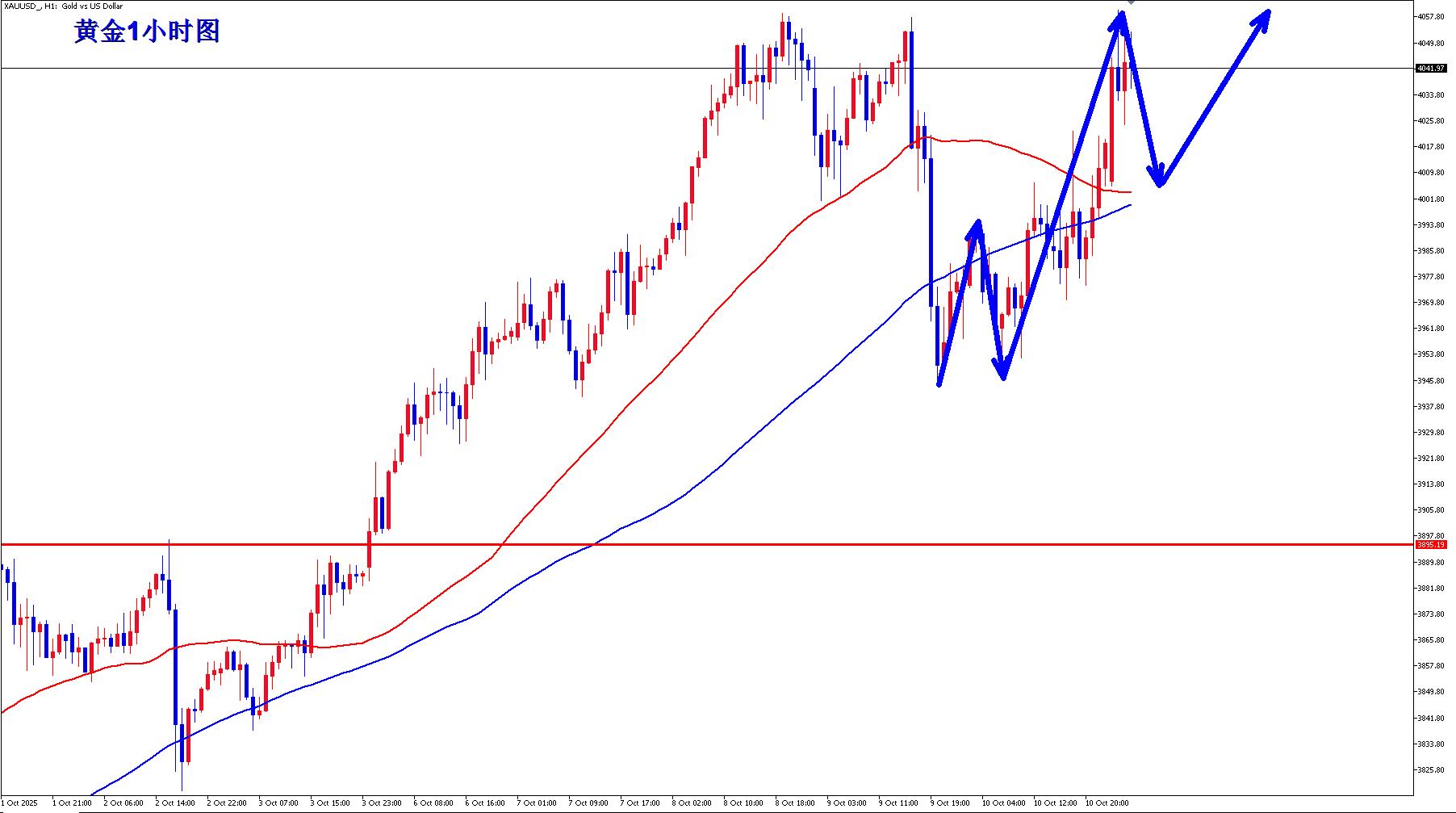 黄金1小时多头继续开始向上,黄金多头气势如虹,黄金1小时均线继续向上拐,那么黄金将继续向上,黄金1小时现在关键多空分水岭4060一线,如果黄金直接突破4060,那么黄金向上空间将进一步打开,没有突破之前,黄金耐心等待回落蓄势再继续多。