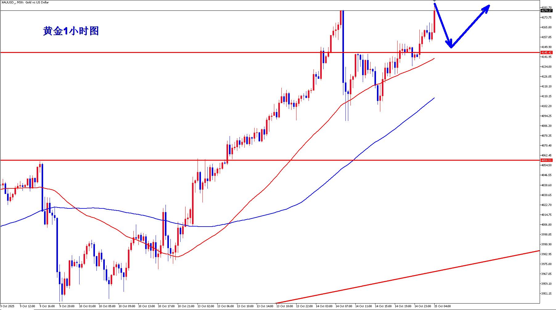 黄金30分钟昨天调整之后,黄金构筑双底,然后黄金美盘再次向上突破,而且突破了双底的颈线位,黄金现在4145已经形成支撑,黄金回落4145上继续逢低做多。