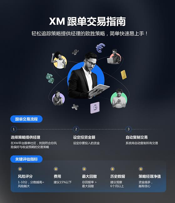 Na www.xmfx.orgunidade de copy trading XM (CopyTrading), você pode escolher a estratégia apropriada para fornecer aos gestores www.xmfx.org base em sua própria preferência de risco e estilo de negociação, e o sistema sincronizará automaticamente suas operações de negociação - siga facilmente as ordens e domine o ritmo do mercado!