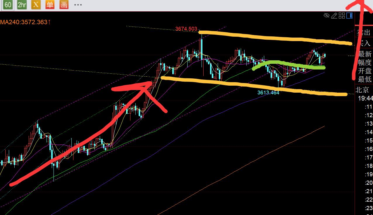 第一,黃金方面:昨日算是一言難盡;前日不管是早間3616看漲,還是歐美盤3630看漲都不給入場機會,全部踏空上漲利潤;昨日早間觸及上行通道下軌附近,靠近66日均線支撐,則3640上提前嘗試看漲,的確企穩拉升了,但只給到3649,離目標差幾米,離減倉差1米,最終回落破損出局;歐盤首次跌至日線5均線3623一線出現企穩反彈,5分鐘二次下探3623再次反彈至3630,則嘗試小雙底去試探看漲,結果美盤前來了一波刺破3620前日低點的誘空,美盤後cpi數據利空金價,價格1秒刺破日內低點,再1秒反拉20米回去;這也是本週幾乎公佈的幾個重大消息,日內走勢都提前走了消息預期,等真公佈之後,結果和實際走勢就反向運行;幸虧,後半夜膽大些,3638直接嘗試了一次小波段看漲,當時分析得出,日內下跌就屬於洗盤,日線5均線回踩確認有所探底拉升,今日就存在一波延續上漲,果然今天的確拉升逼近週三高點3658,剛好20米左右的波段利潤,可以挽回些短線的損失;