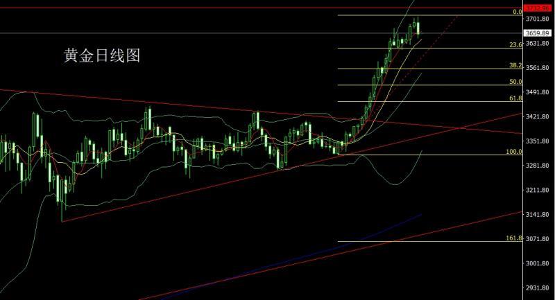 昨日黃金市場開盤在3690.1的位置後行情先小幅拉升給出3695.8的位置後行情震盪回落,美盤開始時段給出3659.1的位置後行情強勢拉升,日線最高觸及到了3707.8的歷史新高後行情尾盤強勢回落,日線最低給到了3645.6的位置後行情整理,日線最終收線在了3657.1的位置後,日線以一根上影線稍長於下影線的大陰線收線,而這樣的形態收尾後,日線具備獲利了結壓力,點位上,下方3325和3322的多和上週3368-3370的多和3377和3385多和3563的多減倉後止損跟進在3570持有,今日早盤先拉升給出3678空保守3680空止損3685,目標看3653和3645,跌破的話看3640和3641-3638區間支撐。