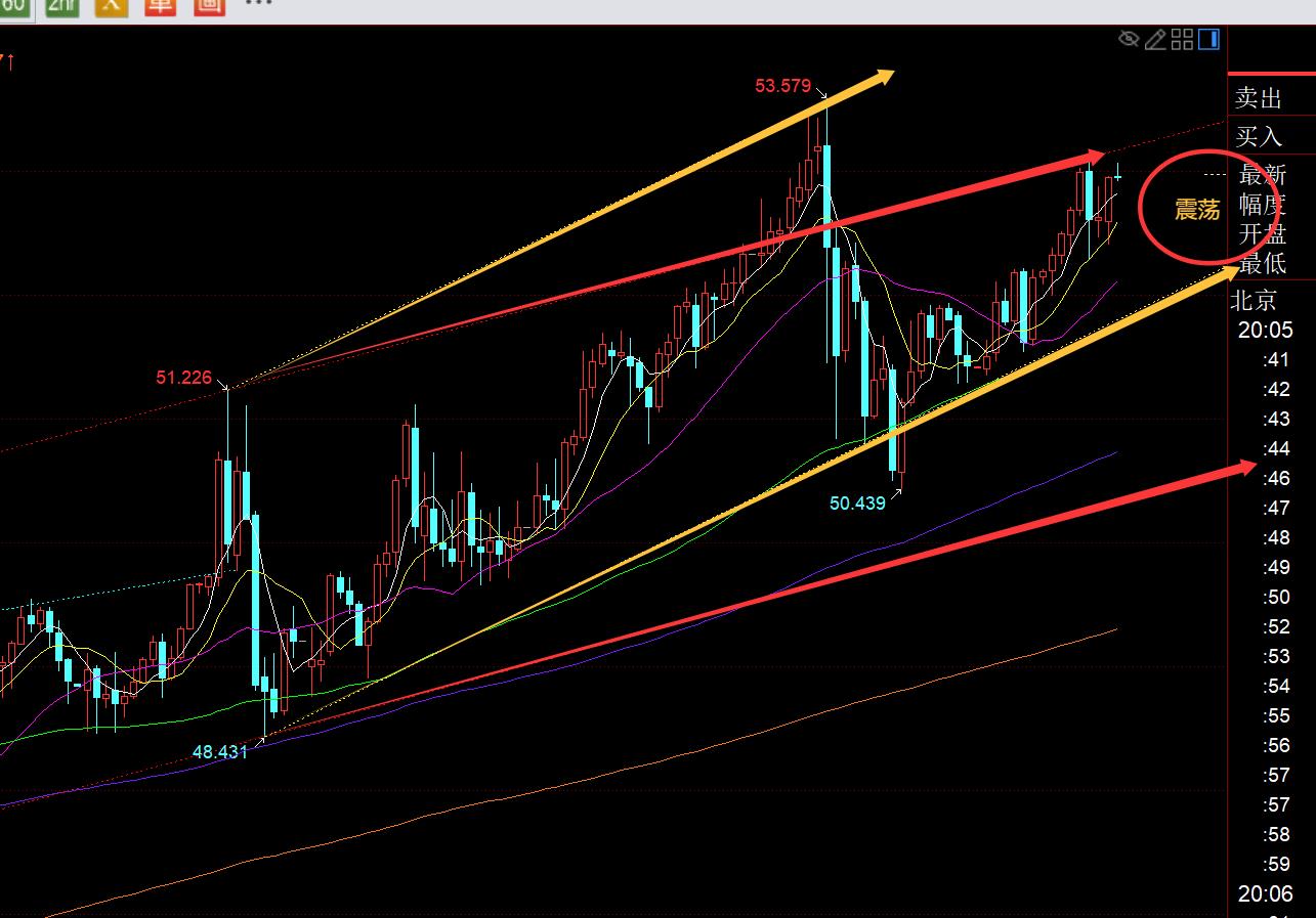 白銀方面:日線級別上,昨日算回踩了5均線,同樣也是強勢單邊一路上拉,連陽單陰走法,所以今日大可能收陽;從圖中看,今晚也預計偏強整理,圈圈範圍內運行,阻力53.2一線,支撐51-51.9,回踩看漲為主,因為今年的白銀走勢漲幅會遠大於黃金,進行單邊持續補漲;會看到,日內即便黃金大幅下跌修正,但白銀只是小跌,而黃金上拉,白銀會更加有力度的拉升;