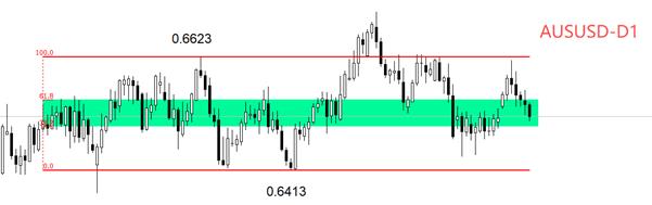 技術角度看,日線級別,AUDUSD處於中期橫盤狀態,上限0.6623,下限0.6413,目前沒有出現震盪結構被打破的跡象。 10月29日,AUDUSD觸及震盪區間上限,隨後開啟跌勢,連續收出五根陰線。最新市價處於震盪區間的0.382~0.618之間,也就是中樞區域。短線走勢有突破圖中綠色中樞下沿,並向震盪區間下限0.6413波動的可能。