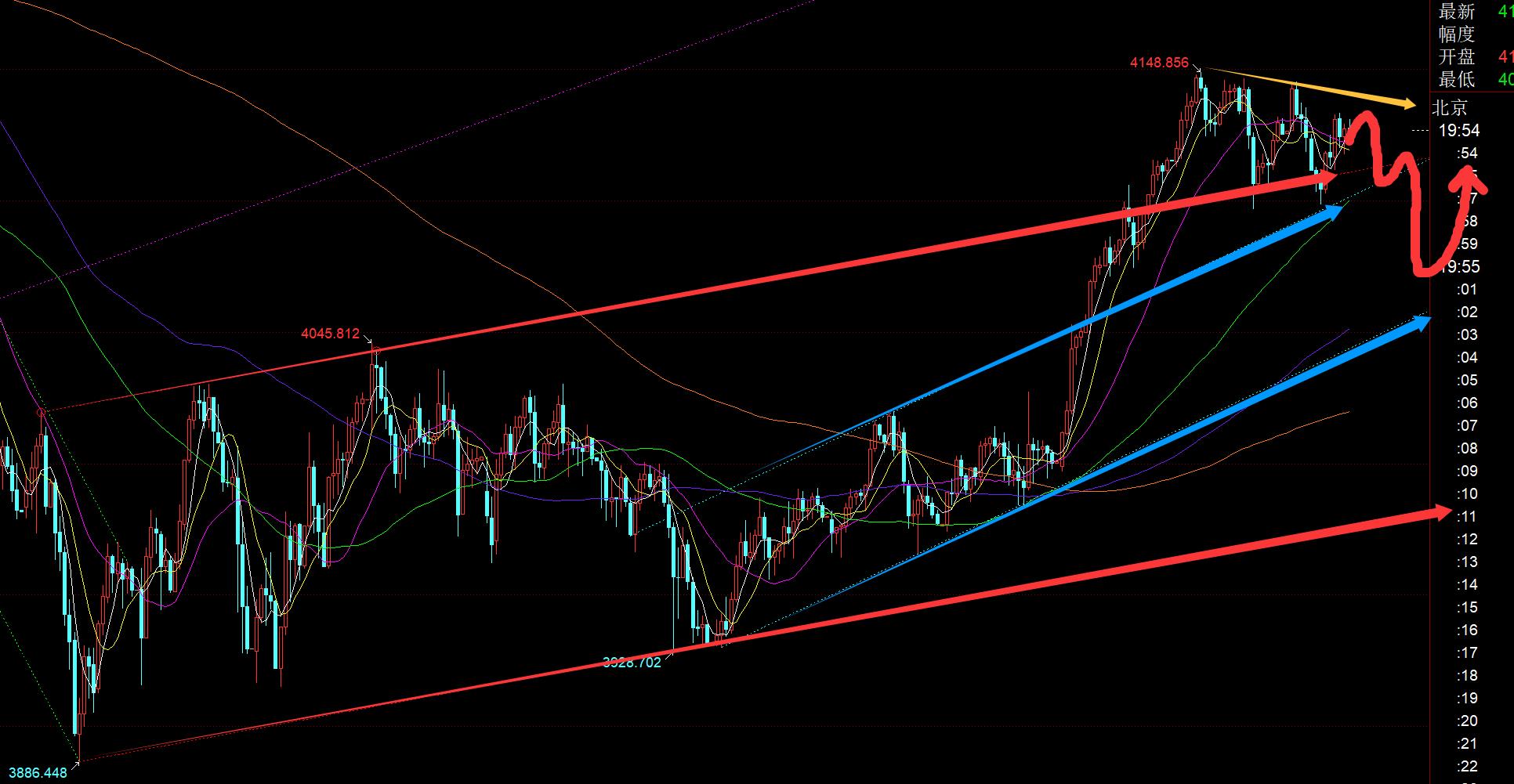 第一,黃金方面:昨日亞盤繼續強勢續漲一波,則午後小幅回踩依托4133上強勢跟隨看漲,抵達4144提示盈利,並且提示若歐盤突破日內高點繼續拉升,美盤還有二次拉升;但美盤前始終維持高位整理,並未突破新高,則不宜高位再盲目跟漲;晚間研報指出,留意小時線10日,一旦有效失守,則逼空結束,會帶來短線的一波下跌修正,最終是跌到了4096,後半夜企穩反抽;其實,從日線級別而言,4096位置並未修正到位,至少中軌4085一線需要去回踩確認;