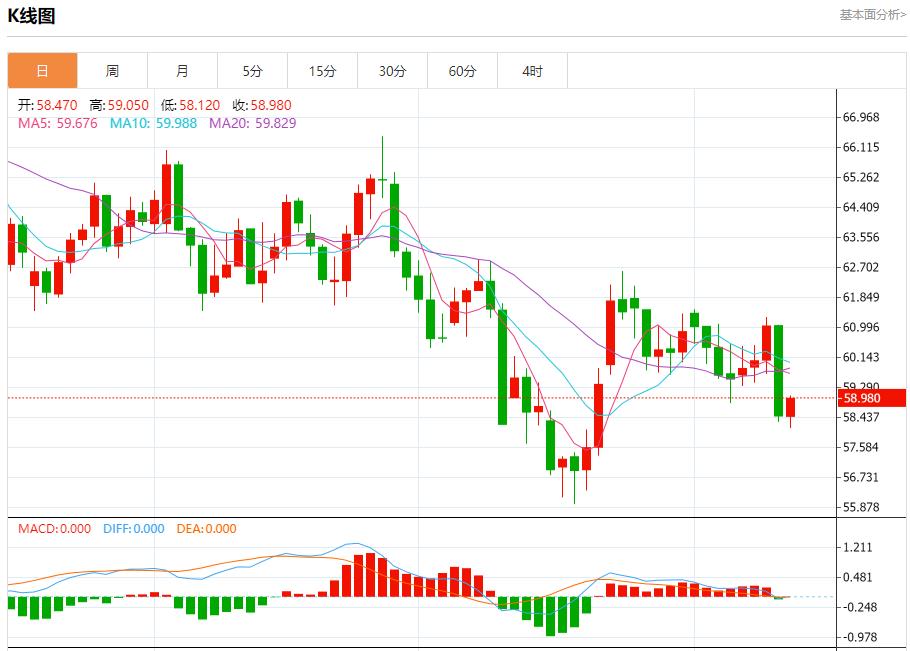 原油市場:截止北京時間21:20,美油上漲,現報58.980,漲幅0.85%。紐市盤前,(原油)價格在最後一個交易日上漲,試圖收復之前的部分失地,並在相對強度指標上卸載一些超賣條件,特別是隨著積極信號的出現,受打破之前短期看漲修正趨勢線的影響。