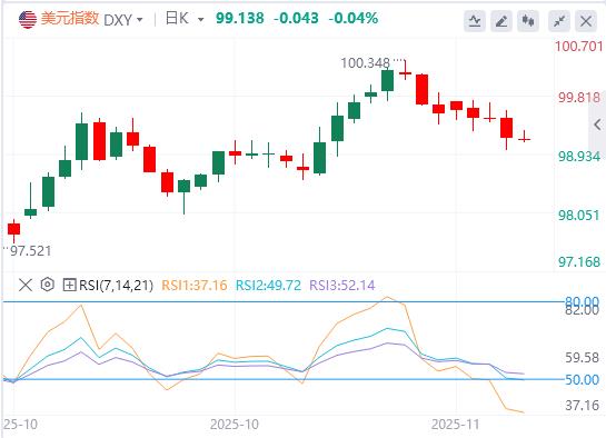 美元指數下跌,因為交易員準備迎接政府重新開放後積壓的美國數據,他們預計這可能表明經濟疲軟。截至目前,美元報價99.13。