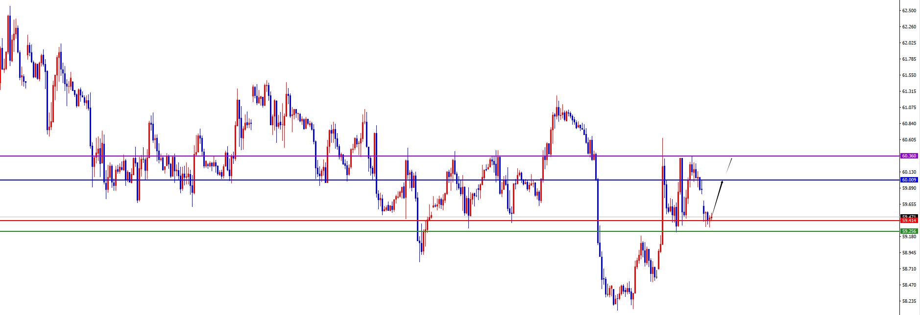 關鍵分水嶺59.30-40,價格沒有出現反轉之前依此位置看上漲