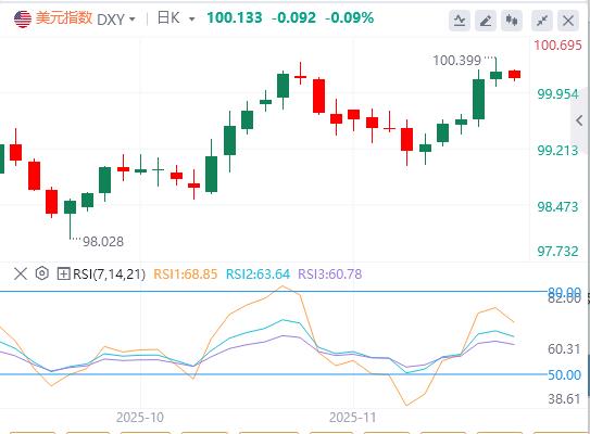 週四,由於喜憂參半的非農就業數據未打消市場對美聯儲12月降息的質疑,美元指數維持在100關口上方高位震盪,盤中觸及6個月高位,截至目前,美元報價100.13。