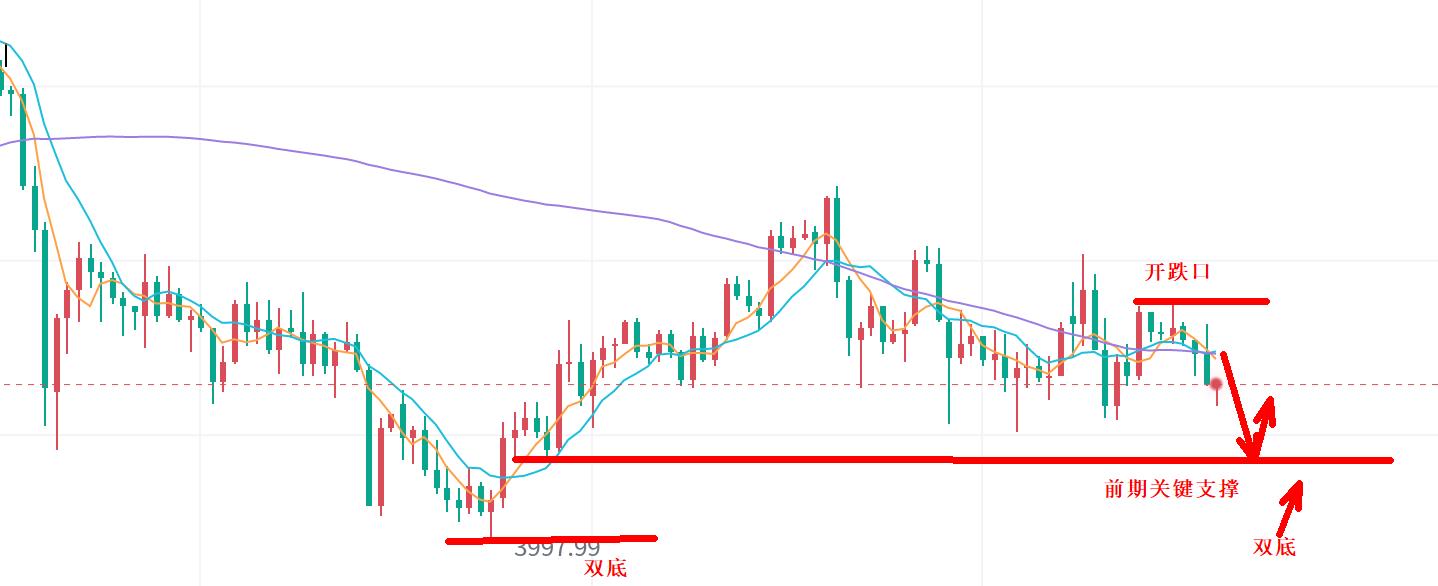 3,下方分水嶺4040,按照節奏來說,早間下跌關注這兩個分水嶺。